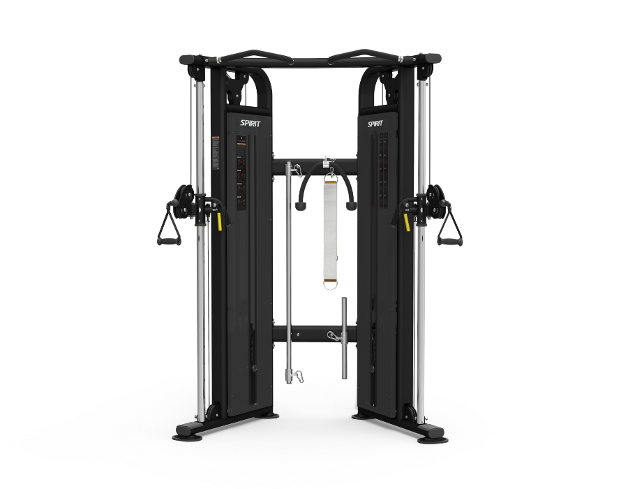 The Spirit Fitness CSF-FUNT Functional Trainer is the all-in-one training system that delivers variety, convenience, and results while maximizing your space. The heavy-gauge steel frame ensures solid performance that will last for years to come. Weight stacks are fully enclosed to reduce the risk of injury. Simple to follow workout diagrams are located on each shroud to help illustrate proper usage.