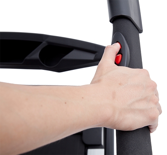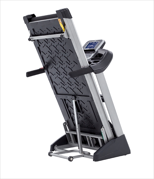 The Spirit Fitness Folding Treadmill is easy to fold up and down for your workout. This feature gives you a full size treadmill for working out, but then folds into a tight compact space when not in use. Simply pull the yellow handle located on the back of the treadmill frame and the unit will unfold. To fold up, simply pick up the treadmill deck until it hinges at the top. You will notice that our assisted design makes this easy and convenient.